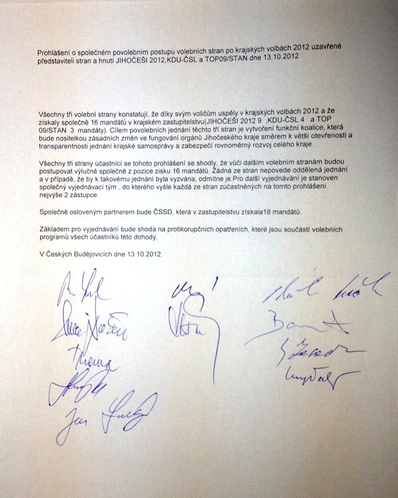 Vážení přátelé, první povolební jednání jsme zahájili se stranami, jejichž programy a cíle nám jsou nejbližší. S TOP 09 a KDU-ČSL jsme uzavřeli dohodu o společném postupu v dalších povolebních vyjednáváních – dohromady máme 16 mandátů. Další oslovenou stranou bude ČSSD.