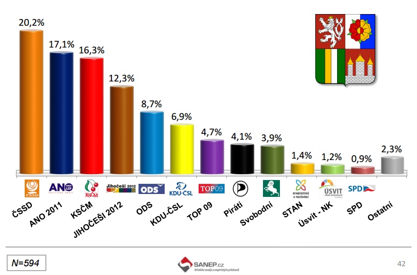 Průzkum volebních preferencí SANEP: Jihočeši 2012 získali 12,3 %