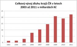 Ministerstvo financí ČR zveřejnilo nové údaje o celkovém zadlužení uváděném v rozpočtech krajů. V roce 2011 se souhrnný dluh krajů zvýšil o 16,7 % oproti roku 2010, což činí 22,3 mld. Kč. Celkově tedy součet nových úvěrů v roce 2011 přesáhl částku 3,2 mld. Kč.