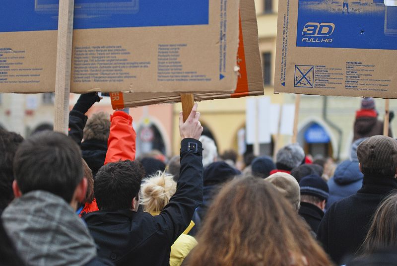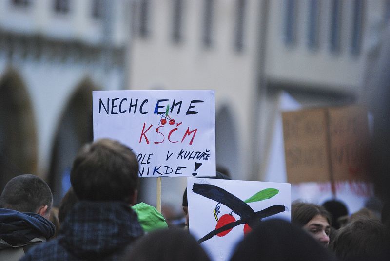 Fotoreportáž z demonstrace studentů proti obsazení resortu školství a kultury KSČM, na kterou jsme studenty také přišli podpořit.